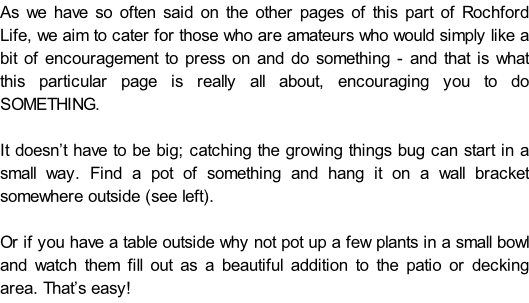 Make a point of visiting us weekly!        Tell a friend about us. Growing Stuff  Articles:   0. A Mind to Grow Something To return to front ‘Growing Stuff’ page, please CLICK HERE Guess what? A definite sign of the time of the year