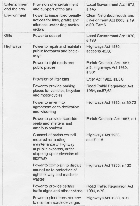 The copies on this page indicate the powers that Parish Councils have.